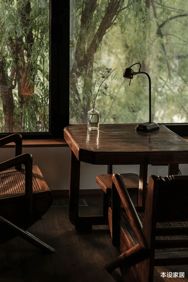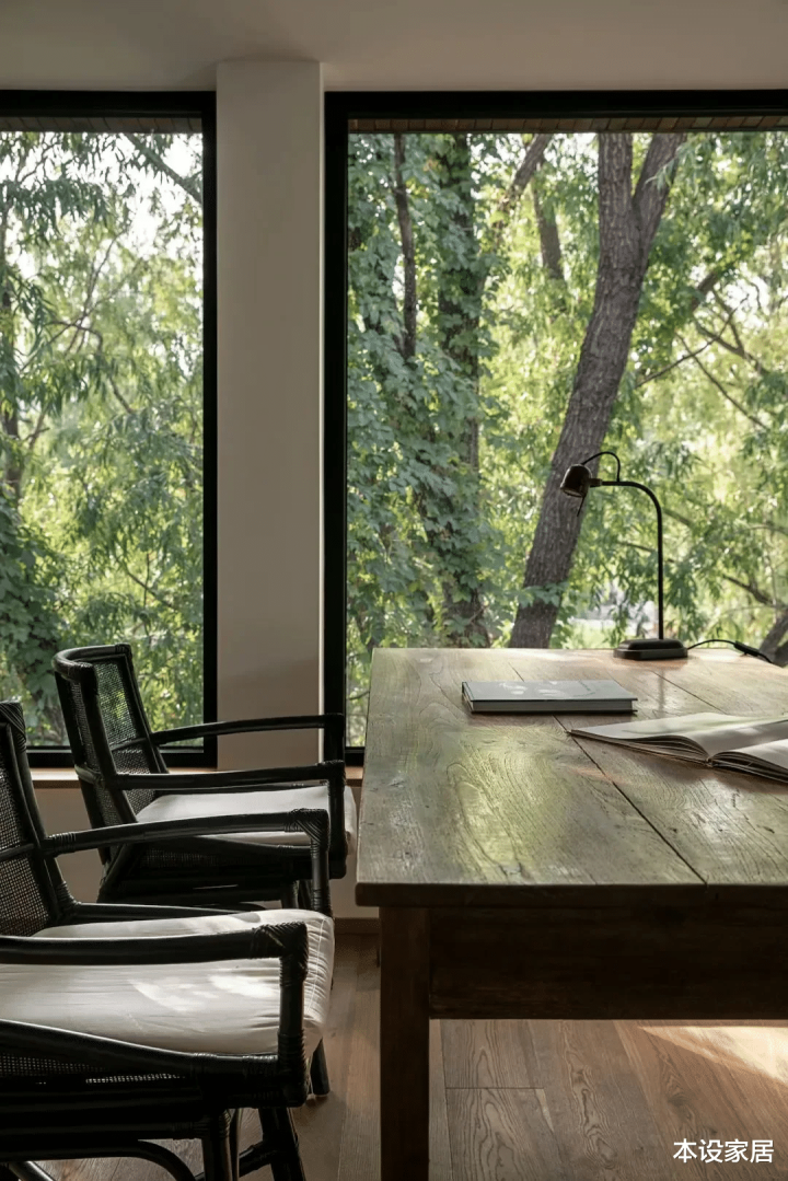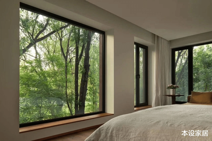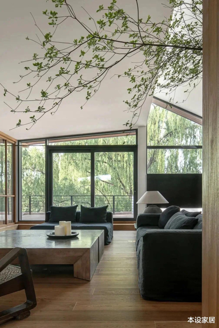 相同的是都拥有唾手可得的大自然景观,当阳光透过树叶和木窗框,洒落在地板和家具上,形成影影绰绰的唯美光影,如同流水般滋润,有种无法言喻的美妙。