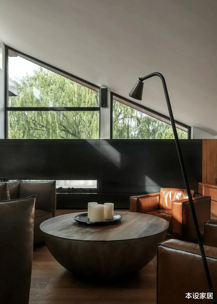3楼的起居室宽敞明亮,整体延续了质朴自然的设计理念,而围合式的大沙发和精致的单人椅布局,不管是一个人的狂欢,还是一群人的孤单都被悉心照料。